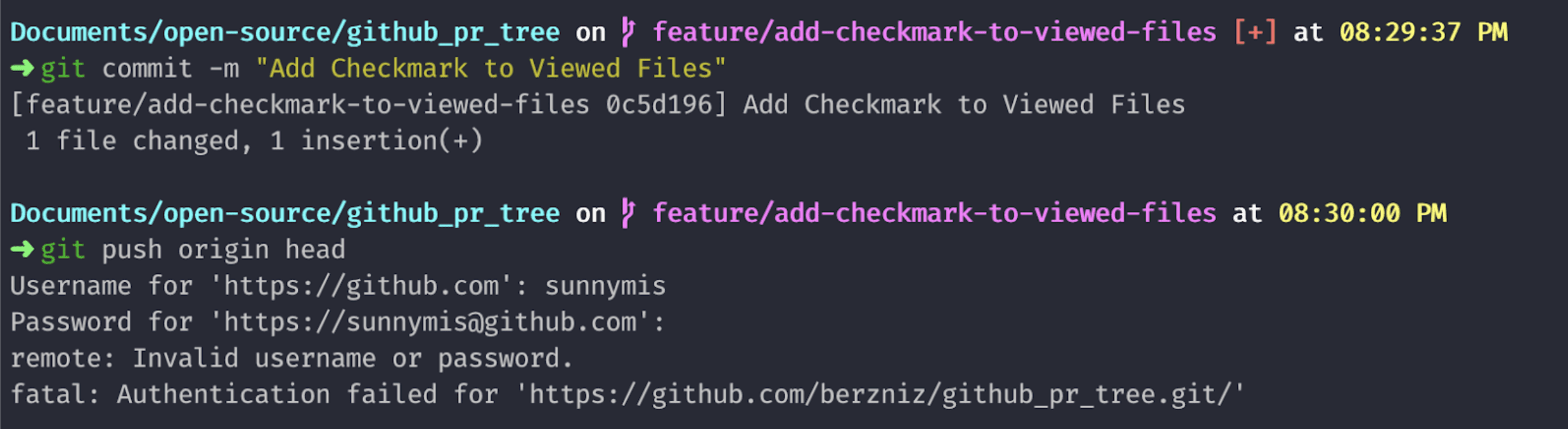 Everything was working as expected so I staged my changes, committed and pushed up to GitHub like I normally do. But then I was presented with the following error: